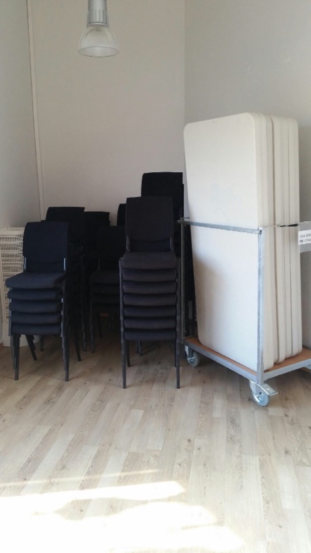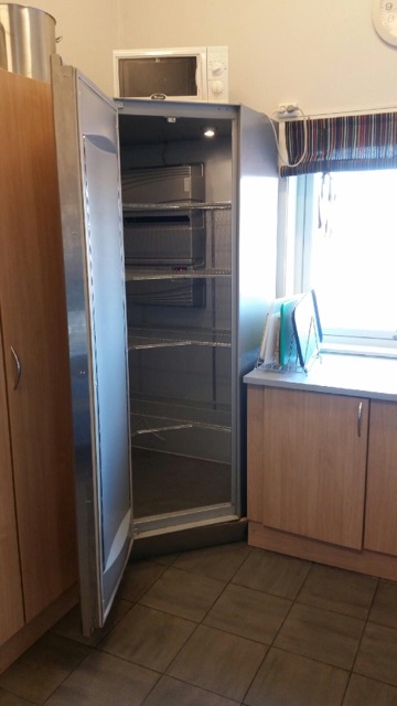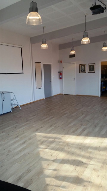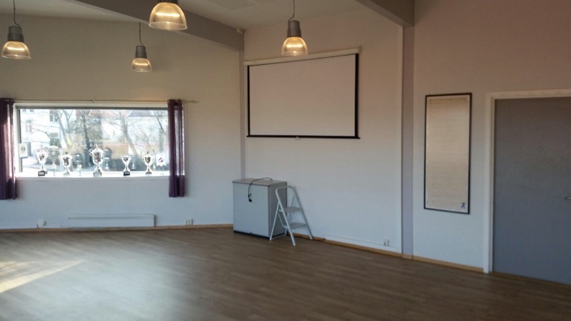 - I hovedetasjen er det selskapslokale / møterom med kjøkken og plass til 40-50 personer. I sokkeletasjen er det innredet klubbkafé, lager og garderobe. Toaletter i gangen.Kjøkkenet inneholder alle fasiliteter som trengs; stort kjøleskap, komfyr, oppvaskmaskin og dekketøy. Salen er utstyrt med bl.a. prosjektor og lerret.
